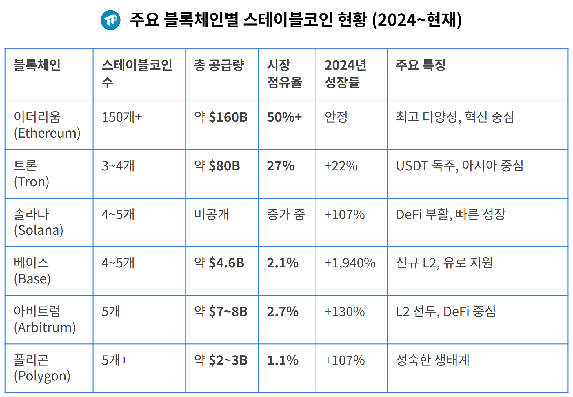 토큰포스트 리서치센터는 《2024–2025 주요 블록체인별 스테이블코인 생태계 분석 보고서》를 통해 스테이블코인 시장의 주 무대가 ‘거래소’에서 ‘체인’으로 이동하고 있다고 진단했다. 본 기사는 해당 보고서의 핵심 내용을 토대로, 각 체인의 기술적 전략과 거버넌스 경쟁 구도를 분석한다. [편집자 주]