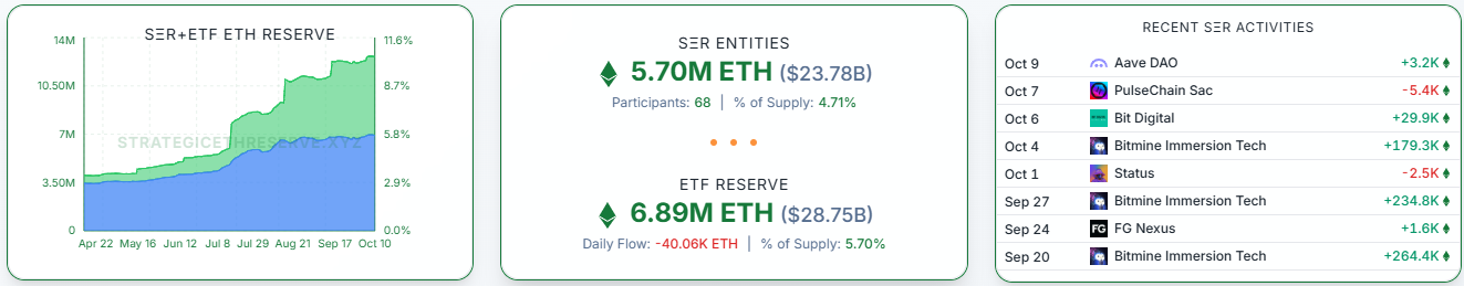 이더리움 전략자산(SER)과 ETF 보유량이 총 1260만 ETH로 집계됐다.