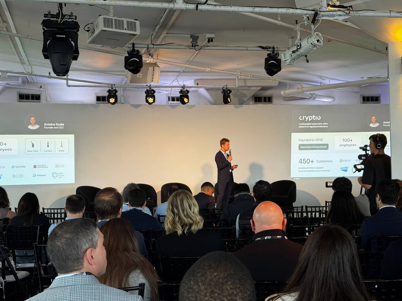 [뉴욕=토큰포스트] ‘크립토 파이낸스 포럼 뉴욕 2025(Crypto Finance Forum NYC 2025)’가 20일(현지시간) 오전 트라이베카360(Tribeca360)에서 개막했다. 개막식의 문은 크립티오(Cryptio) 최고경영자(CEO) 앙투안 스칼리아(Antoine Scalia) 의 환영 연설로 열렸다.