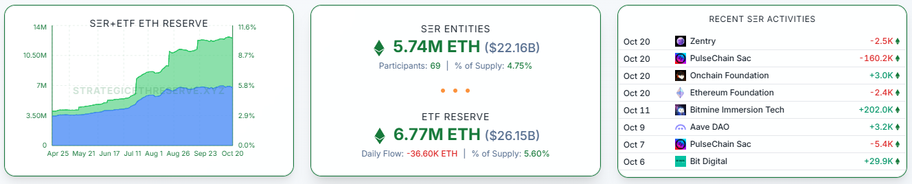 이더리움 전략자산(SER)과 ETF 보유량이 총 1253만 ETH로 집계됐다.