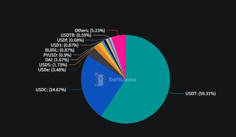 스테이블코인 시장에서 이더리움이 1623억1000만 달러(53.2%)로 가장 큰 비중을 차지하고 있다.