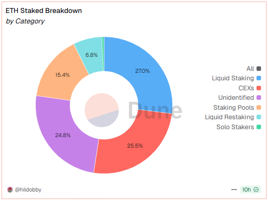 ▲이더파이(ether.fi, 유동성 리스테이킹 프로토콜)는 209만7881ETH(5.8%), ▲피그먼트(Figment, 스테이킹 풀)는 154만9504ETH(4.3%), ▲크라켄(Kraken, 중앙화 거래소)은 133만2674ETH(3.7%)로 뒤를 이었다.