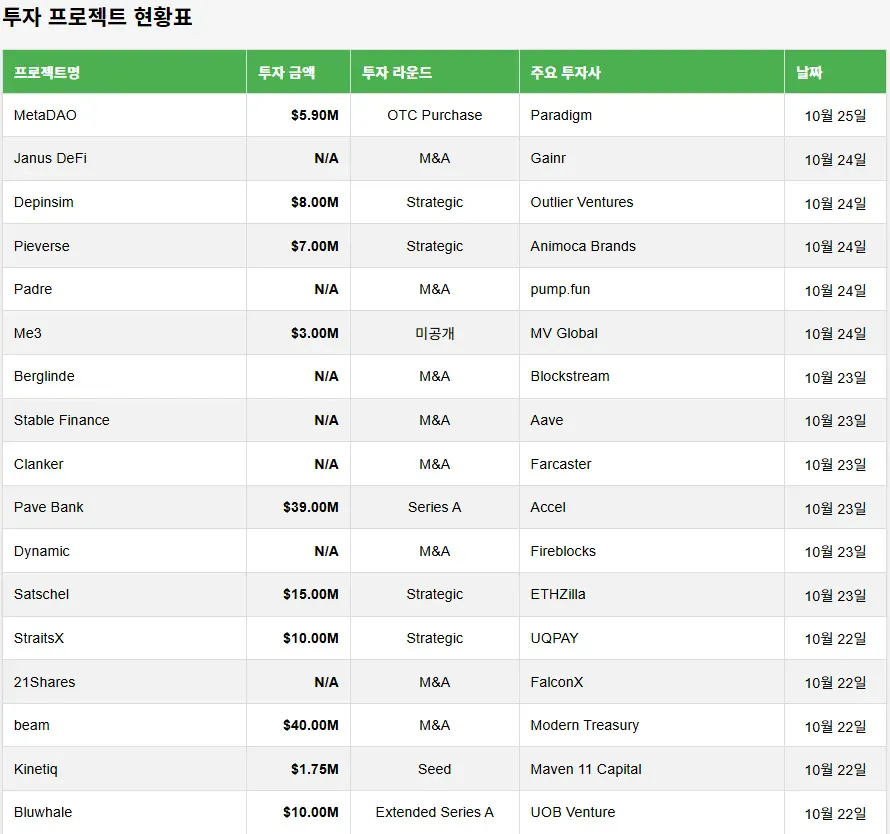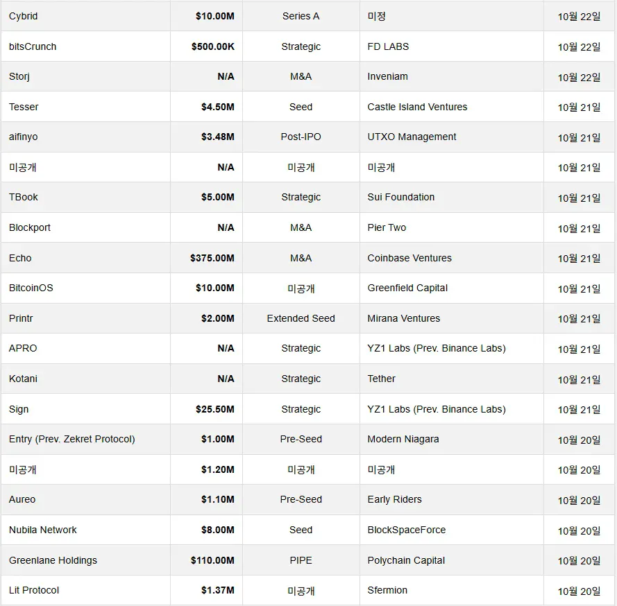 크립토랭크 집계에 따르면 10월 20일~26일 한 주 동안 암호화폐 산업 전반에서 총 30건의 투자 라운드를 통해 약 3억630만 달러(약 4360억원)가 조달됐다.