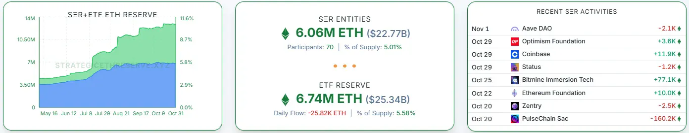전략자산(SER) 보유 물량은 606만 ETH(227억7000만 달러)로, 전체 이더리움 공급량의 5.01%를 차지했다.
