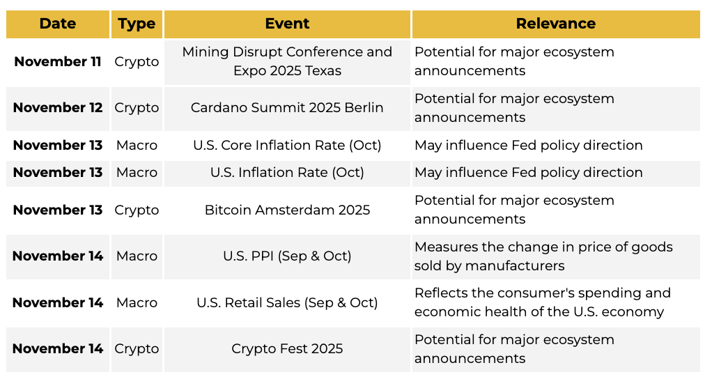 암호화폐 업계 내부에서는 다음 주 미국 텍사스, 독일 베를린, 네덜란드 암스테르담 등지에서 열리는 주요 컨퍼런스에 주목하고 있다. 거시 데이터 부재 속에서 기술·규제·프로젝트 업데이트 소식이 단기 시장심리에 더 큰 영향을 줄 수 있다는 것이다.