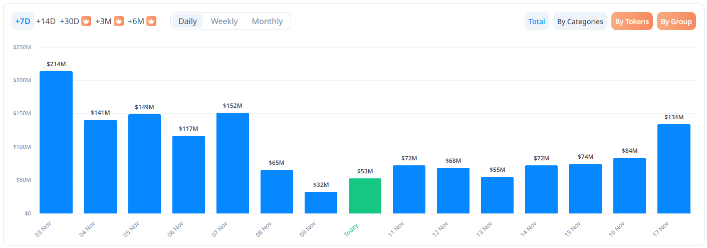 크립토랭크 집계에 따르면 11월 10일부터 16일까지 한 주간 총 약 4억7800만 달러 규모의 토큰이 해제될 예정이다.