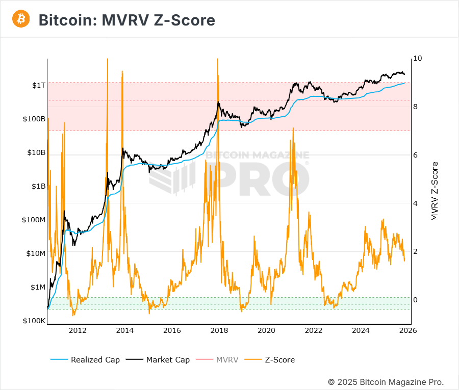 MVRV Z-스코어는 1.74로, 전주(1.59) 대비 상승했다. 여전히 중립 구간(0~2) 내에서 움직이고 있으나 단기적으로 시장 심리가 점차 회복되는 흐름을 보이고 있다.