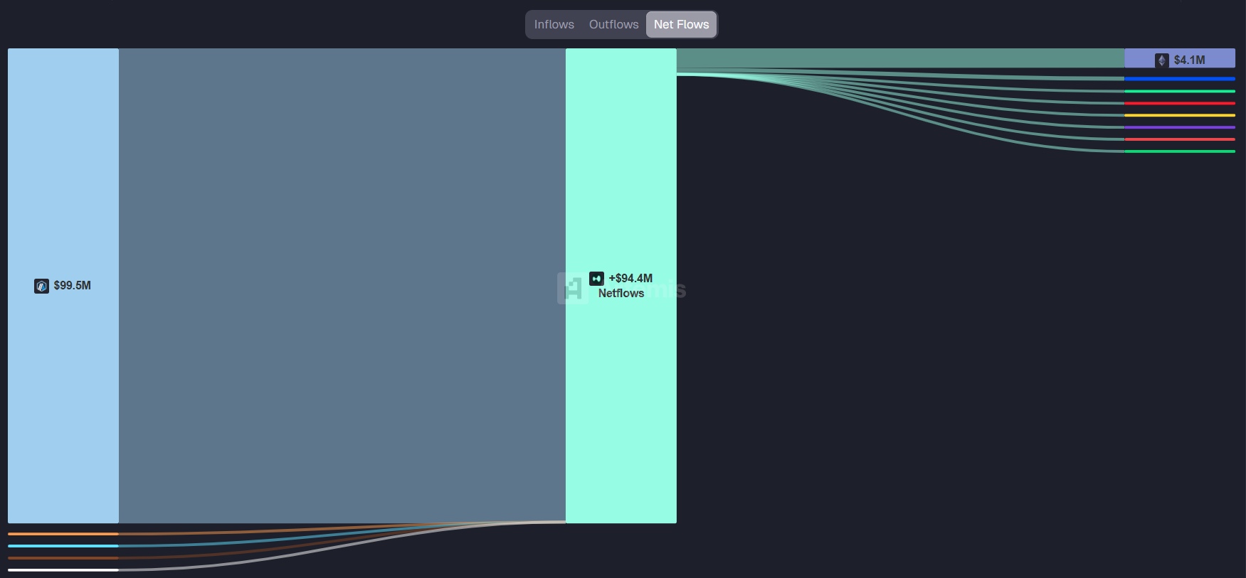 ▲이더리움(9억0601만 달러) ▲하이퍼리퀴드(8억9699만 달러) ▲베이스(1억2553만 달러) ▲베라체인(7206만 달러) ▲아발란체 C-체인(5832만 달러) ▲BNB 체인(5555만 달러)도 유출 규모가 컸다.