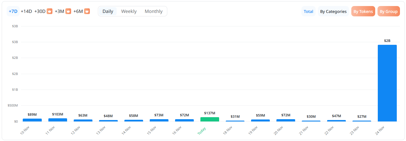 가장 많은 해제가 예정된 시점은 11월 17일(1억3700만 달러)로, 전체의 약 34%가 해당일에 집중돼 있다.
