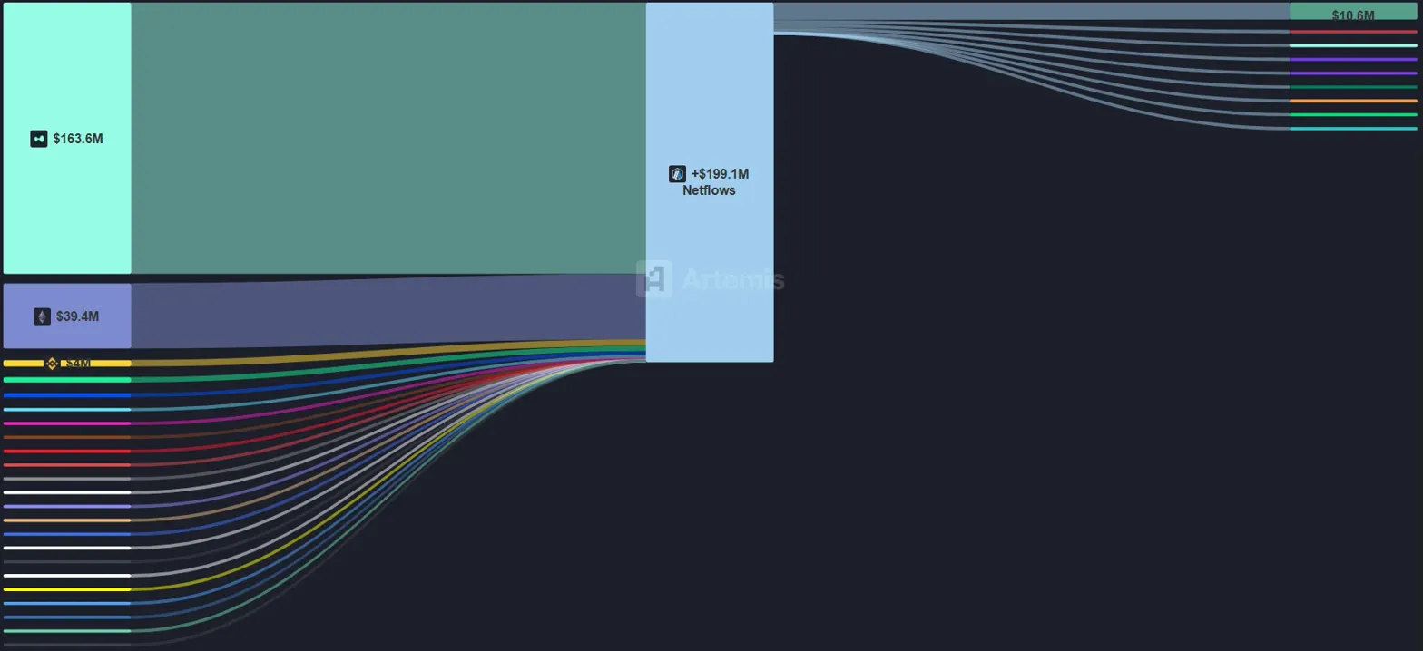 19일 기준 암호화폐 분석 플랫폼 아르테미스에 따르면 최근 7일간 가장 많은 브리지 자산 유입을 기록한 체인은 아비트럼으로, 약 15억738만 달러 규모의 자금이 유입됐다.