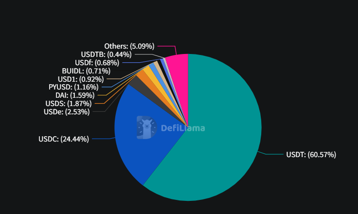 전체 시장에서 USDT와 USDC가 85% 이상을 차지하는 양강 구조가 유지된 가운데, PYUSD·USDS 등 일부 신생 스테이블코인이 점유율을 조금씩 확대하는 모습이다.