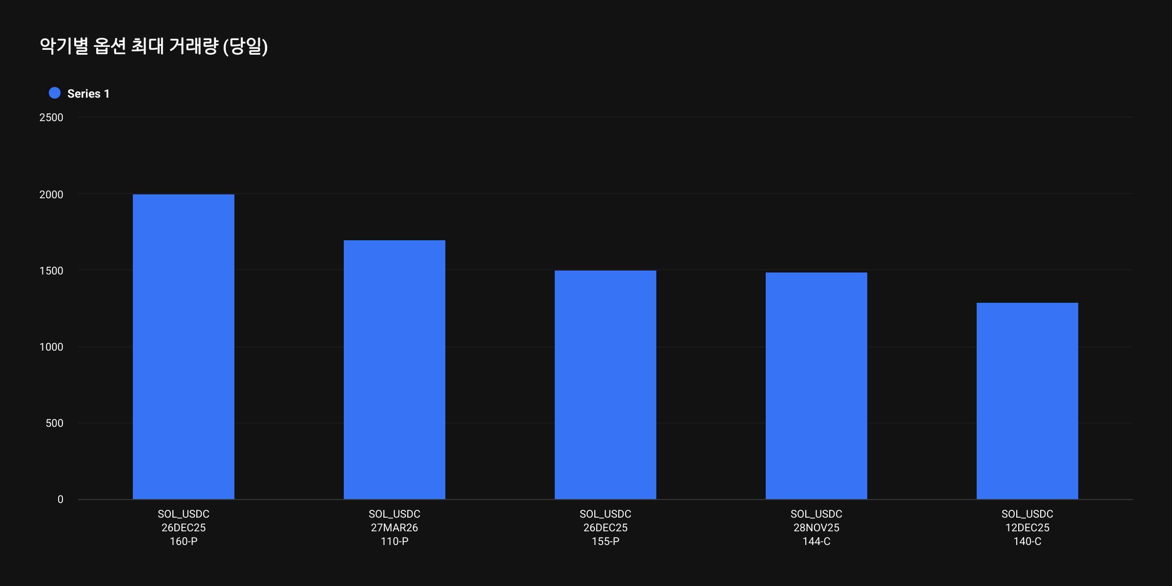 솔라나 160달러 풋옵션(12월 26일)|110달러 풋옵션(26년 3월 27일)|155달러 풋옵션(12월 26일)|144달러 콜옵션(11월 28일)|140달러 콜옵션(12월 12일)