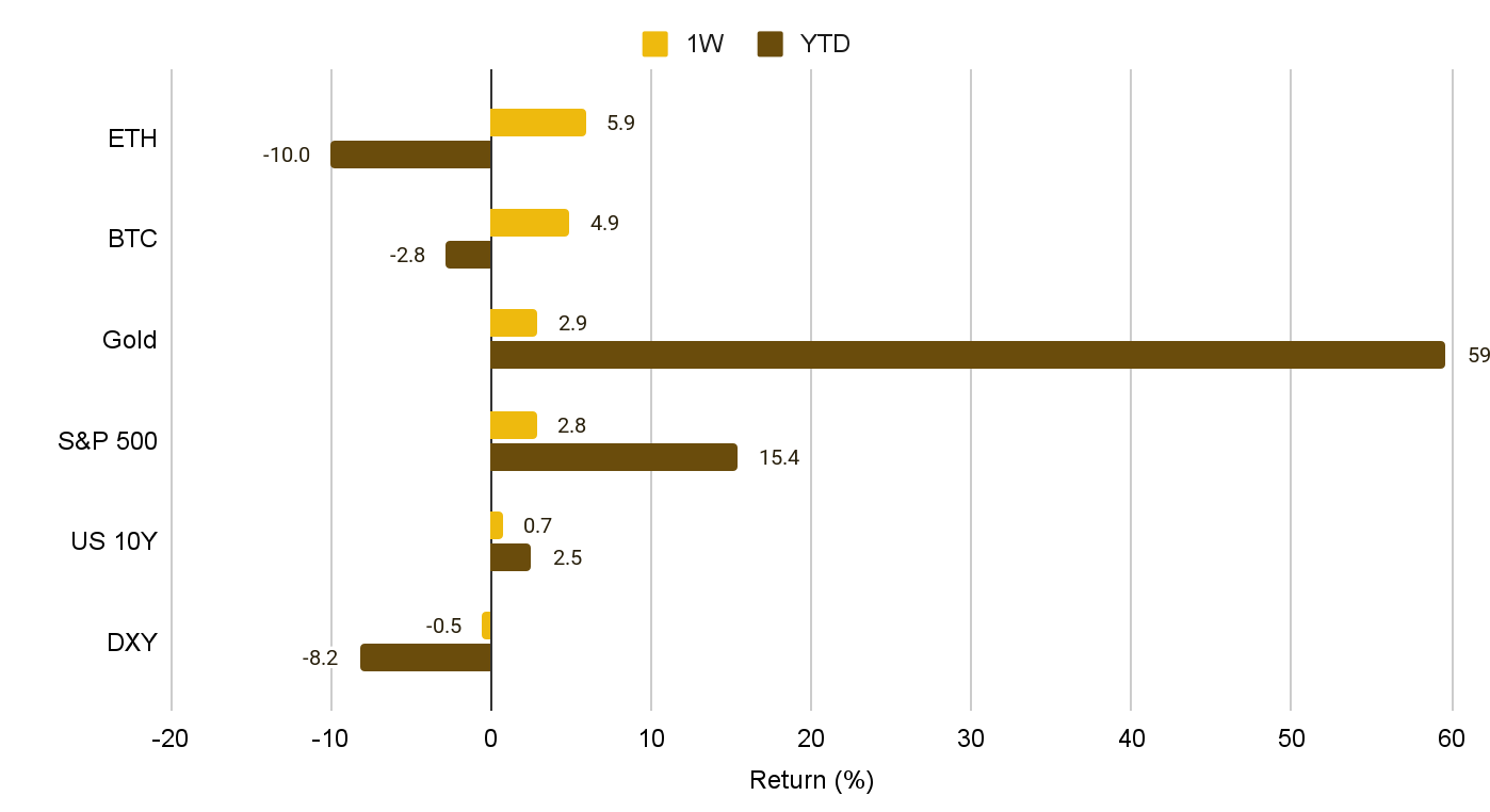 지난주 암호화폐 시장은 비트코인이 9만 달러를 다시 넘어서고 S&P 500 지수가 2.8% 상승하는 등 눈에 띄는 반등세를 보였다. 시장 분위기가 한 주 만에 급반전된 핵심 배경에는 미국 연준(Fed)의 12월 금리 인하에 대한 기대감이 극적으로 높아진 점이 작용했다.