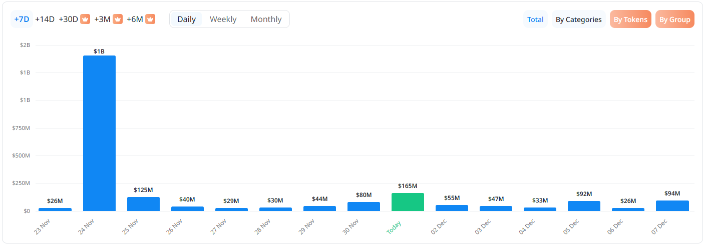 가장 많은 해제가 예정된 시점은 12월 1일(약 1억6500만 달러)로, 해당 주간 물량의 약 32%가 해당일에 집중돼 있다.