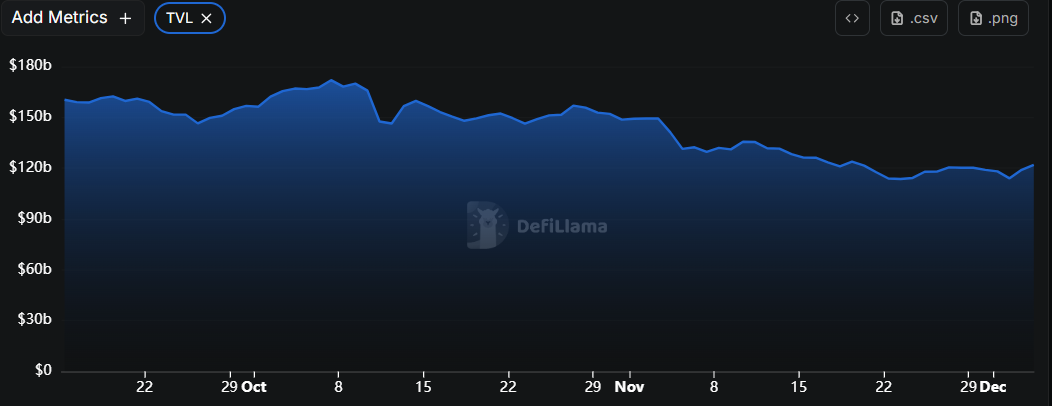 탈중앙화 금융(DeFi, 디파이) 생태계의 총예치액(TVL)이 1219억8400만 달러로 증가했다.