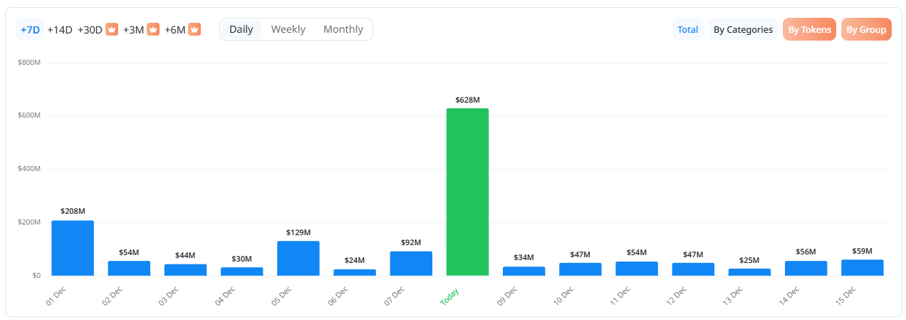 가장 많은 해제가 예정된 시점은 12월 8일(약 6억2800만 달러)로, 해당 주간 물량의 절대적 비중이 이날에 집중돼 있다.