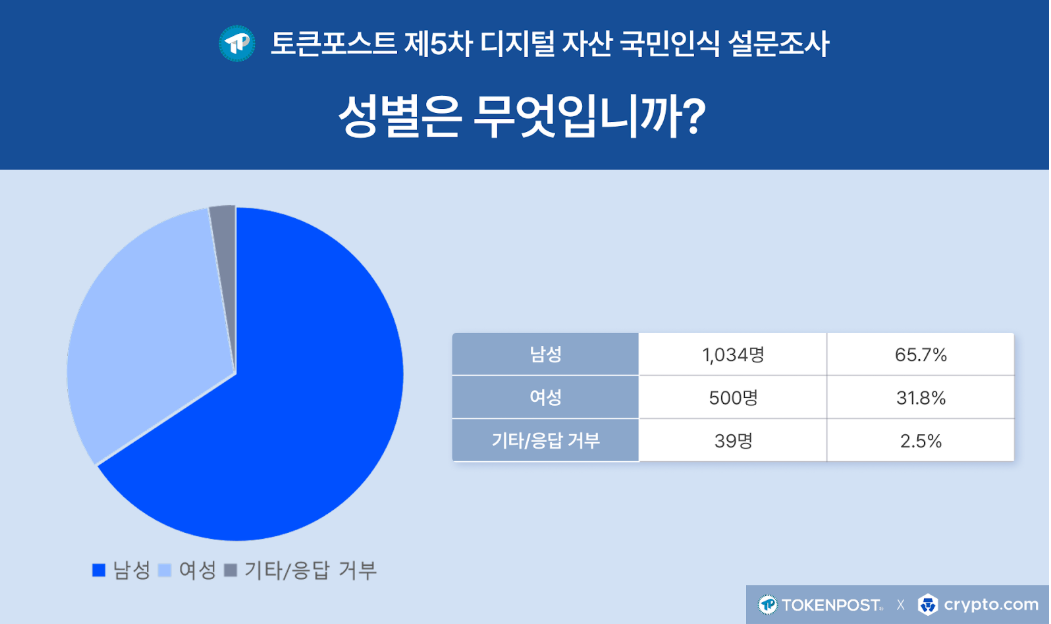인구통계 문항에는 총 1,573명이 응답했다. 성별은 남성 1,034명(65.7%)으로 가장 많았고, 여성 500명(31.8%), 기타·응답 거부 39명(2.5%) 순이었다.