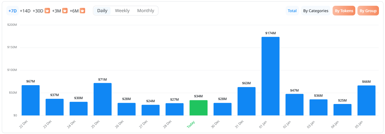 크립토랭크 집계에 따르면 12월 29일부터 1월 4일까지 일주일 동안 총 약 4억700만 달러 상당의 토큰이 시장에 풀릴 예정이다.