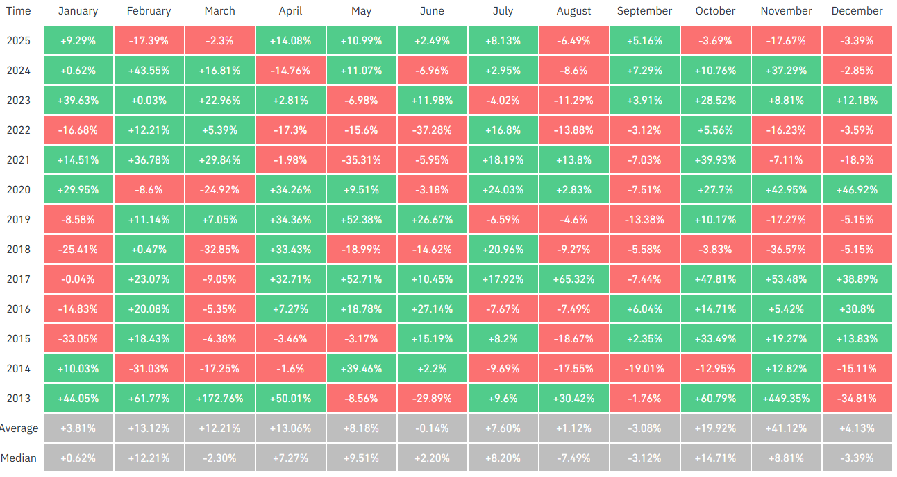 [편집자 주] 비트코인은 장기적으로 가장 높은 수익률을 기록한 자산이지만 단기 흐름에서는 강한 변동성과 계절적 패턴을 반복한다. 비트코인의 주간·월간·분기·연간 수익률을 정리해 상승·하락 빈도, 평균 수익률, 중앙값 등의 지표를 기준으로 흐름의 상대적 위치를 확인해본다.