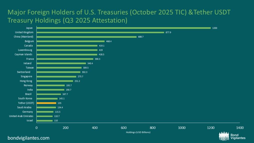 테더, 미 국채 ‘국가급 큰손’ 됐다… “달러 시스템의 기생 아닌 동거”