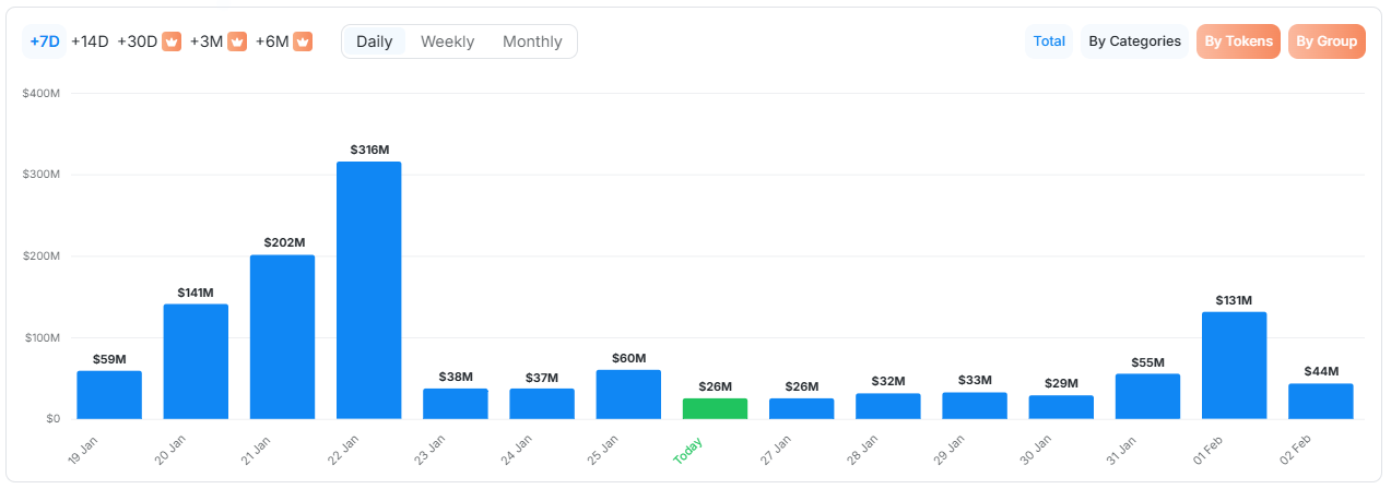 가장 많은 해제가 예정된 시점은 2월 1일(약 1억3100만 달러)로, 해당 주간 전체 물량 가운데 최대 규모가 이 날짜에 집중돼 있다.