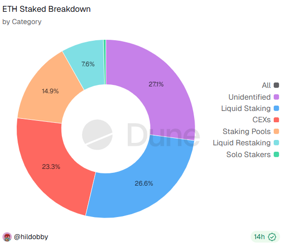 단일 스테이커 순위를 보면 ▲리도가 866만1983 ETH를 예치하며 약 23.5%의 최대 점유율을 유지하고 있다.