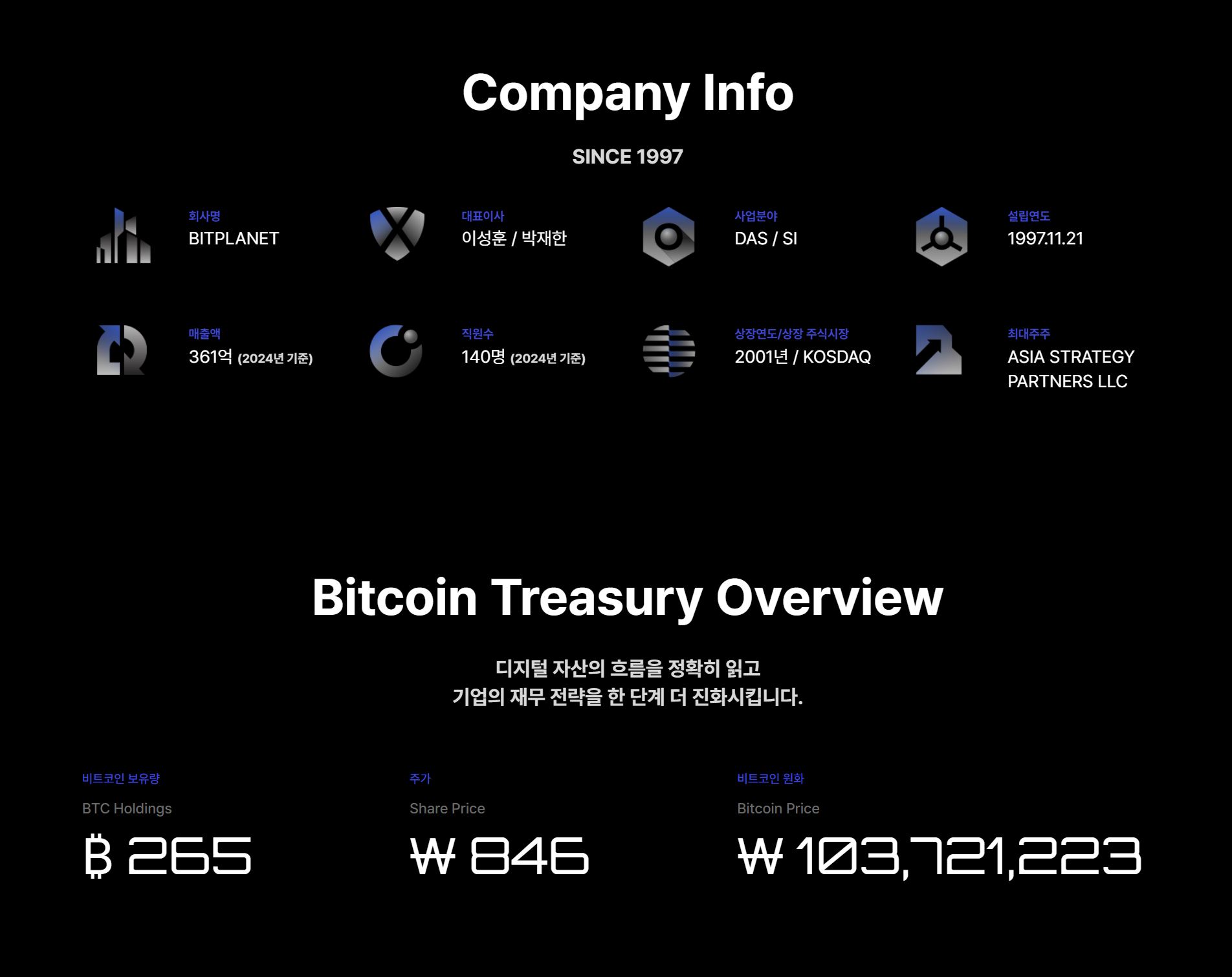 이 대표는 비트플래닛이 국내 규제 당국에 모델 케이스가 되기를 희망한다. "규제 당국이 '비트코인이 어떻게 되든 디지털 자산을 매입할 때는 이런 프레임워크가 있어야 한다'는 기준을 만들 때, 우리가 그 모델이 될 수 있습니다."