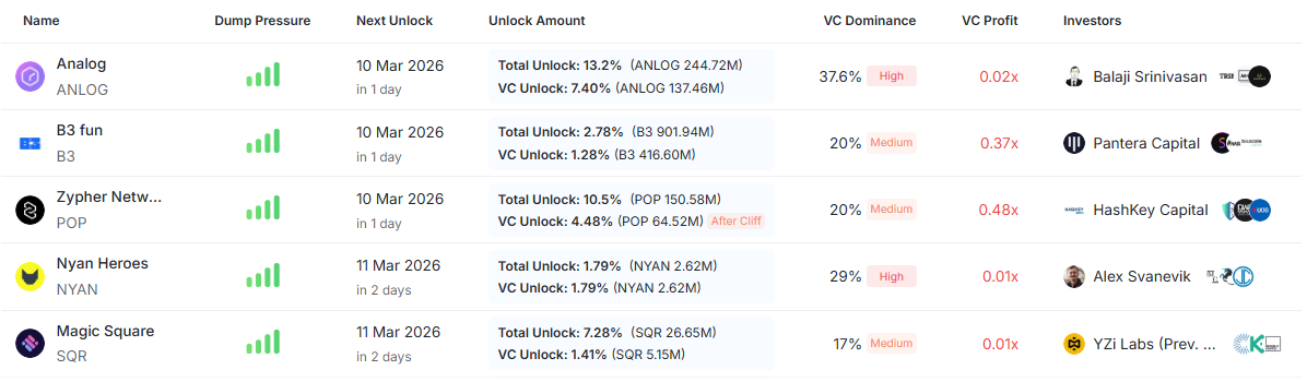 크립토랭크 집계에 따르면 3월 9일부터 3월 15일까지 일주일 동안 약 45억8000만 달러 상당의 토큰이 시장에 순차적으로 풀릴 예정이다.