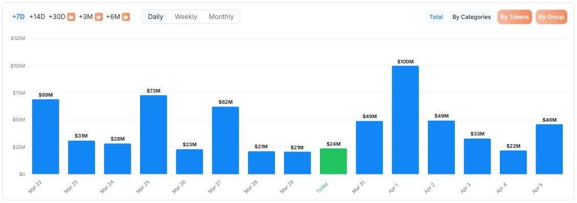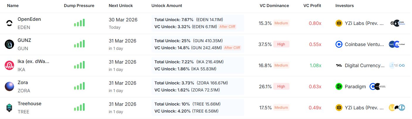 크립토랭크 집계에 따르면 3월 30일부터 4월 5일까지 한 주간 락업 해제 규모는 약 3억2300만 달러 수준이다.