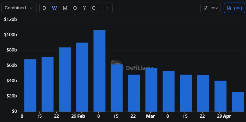 탈중앙화 거래소(DEX)의 주간 거래량이 424억5600만 달러 규모로 집계됐다.
