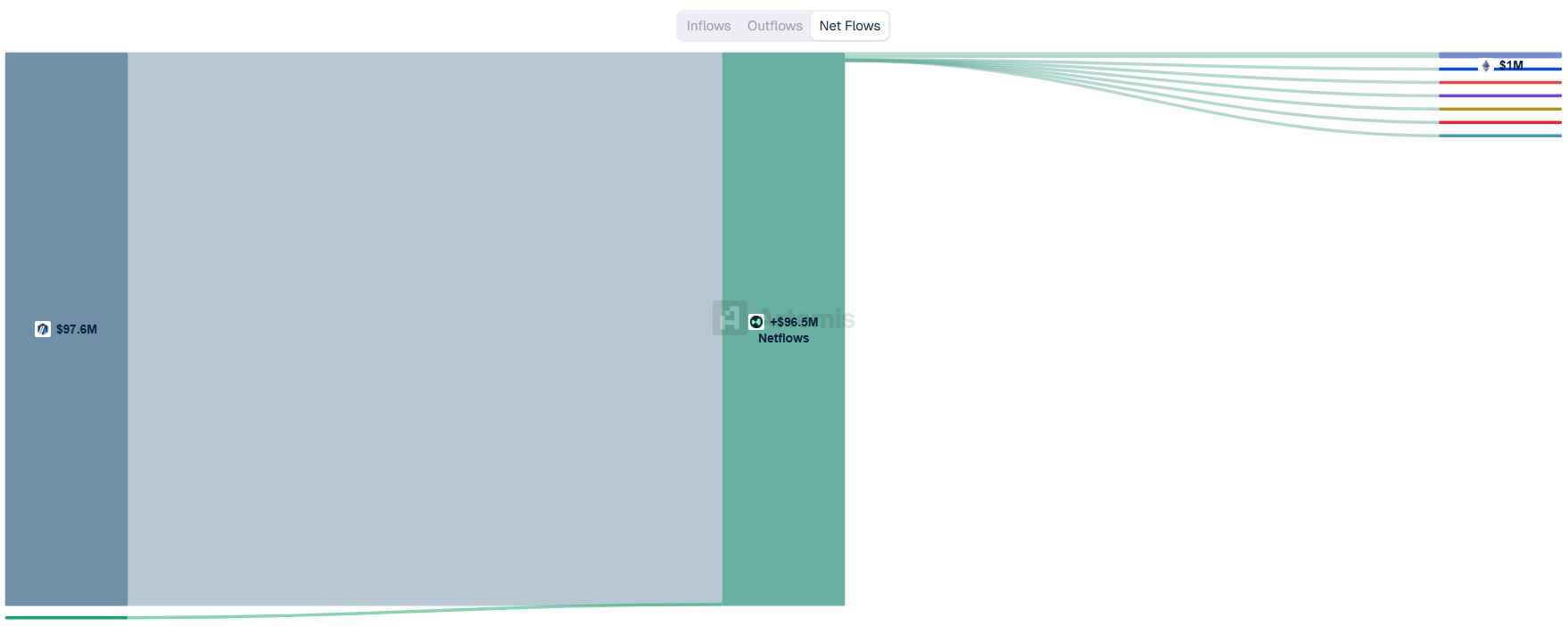 반면 순유출 규모가 가장 컸던 체인은 아비트럼으로, 1억1134만 달러가 순유출됐다.