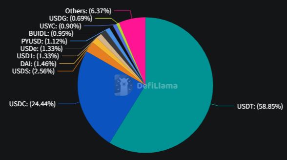 스테이블코인 시장에서 체인 점유율을 보면 이더리움이 1668억8600만 달러(53%)로 가장 큰 비중을 차지하고 있다.