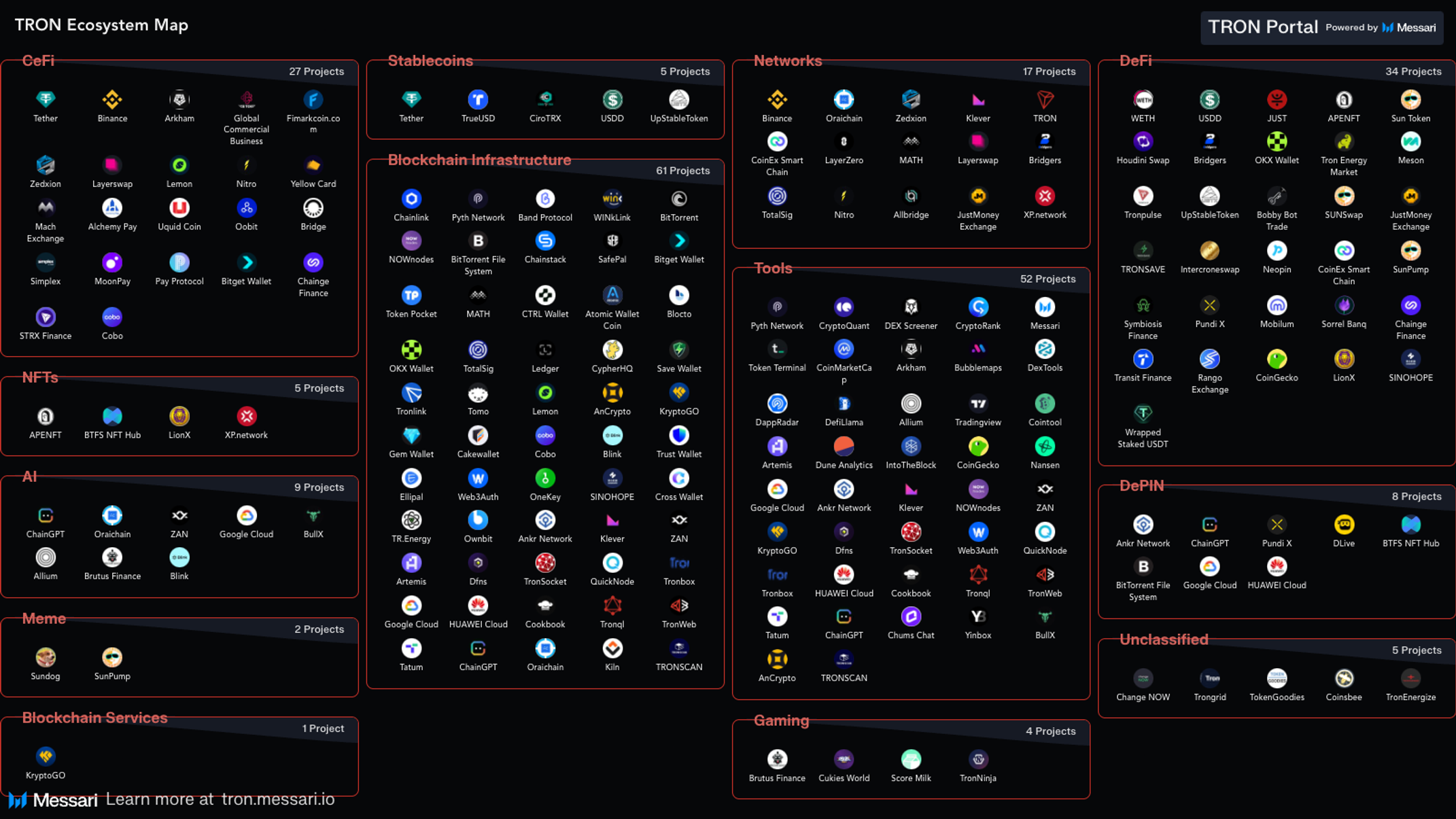 트론은 블록체인 분야의 선도 기업들과 계속 파트너십을 맺고 있으며, 200만 달러 이상의 시가총액을 가진 141개 이상의 프로젝트가 트론에서 구축되고 있다. 4분기에 발표된 몇 가지 주목할 만한 파트너십과 생태계 업그레이드는 다음과 같다: