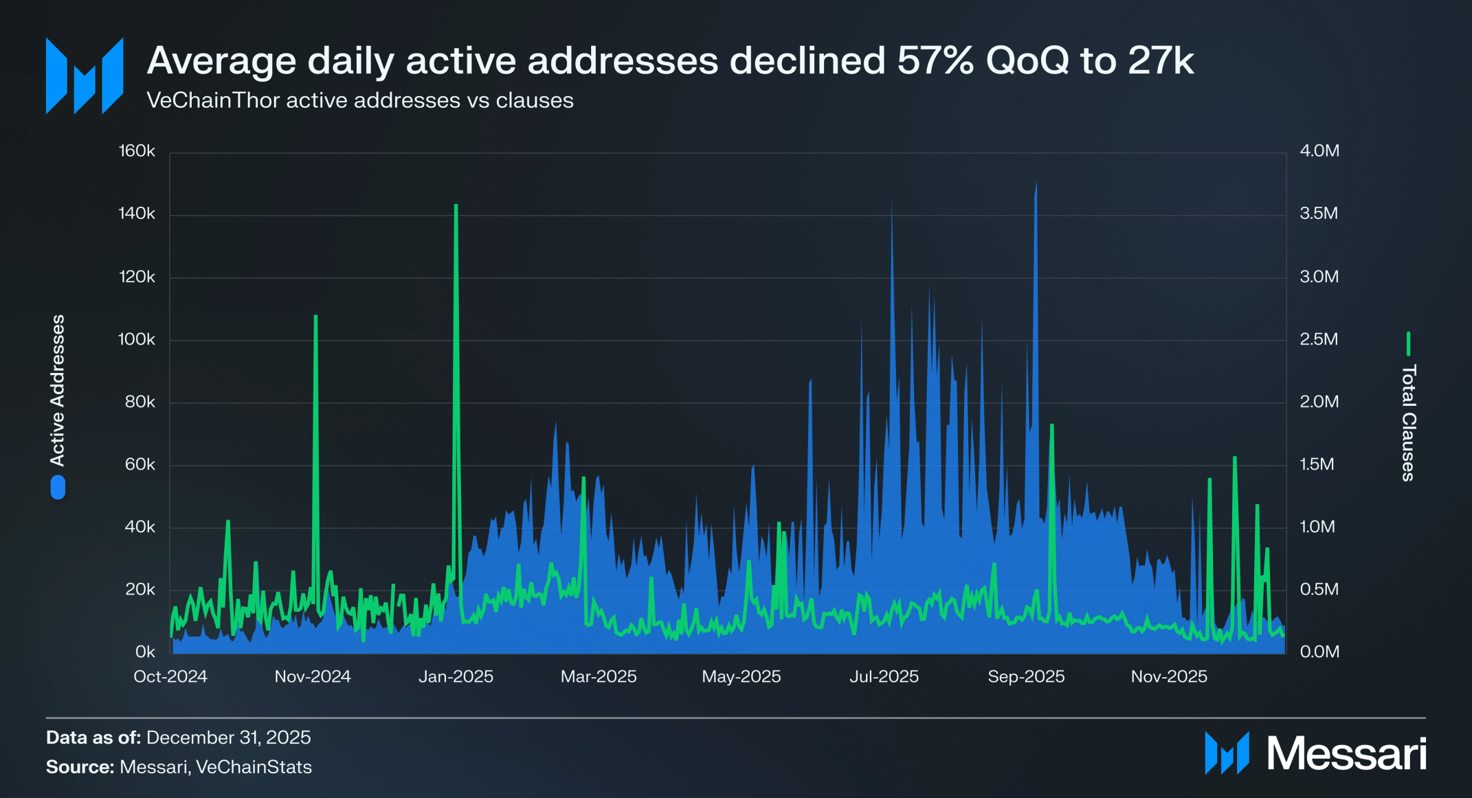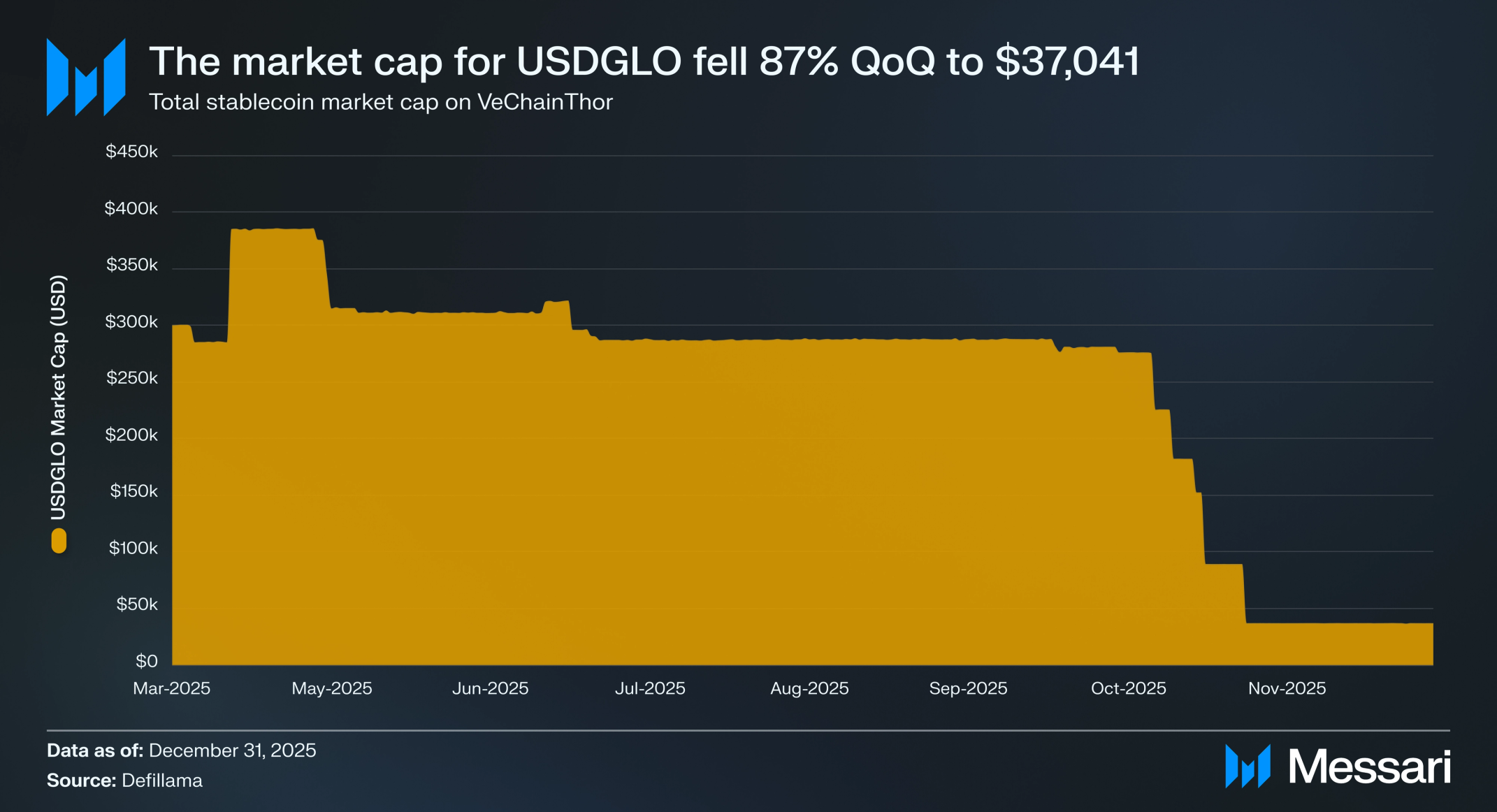 4분기 동안 시가총액의 급격한 하락은 비체인과 글로 달러(Glo Dollar) 팀이 2026년 1월 1일까지 USDGLO에 대한 지원을 종료할 것이라고 발표한 이후였다. 이러한 움직임은 제한된 채택과 자원 제약에 기반했으며, 생태계가 USDC와 같이 더 널리 사용되는 스테이블코인으로 전환하도록 촉구했고 보유자들이 일몰에 앞서 점진적으로 USDGLO에서 이탈하도록 했다.