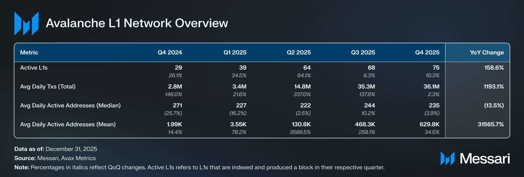 아발란체(Avalanche) 2025년 4분기 현황
