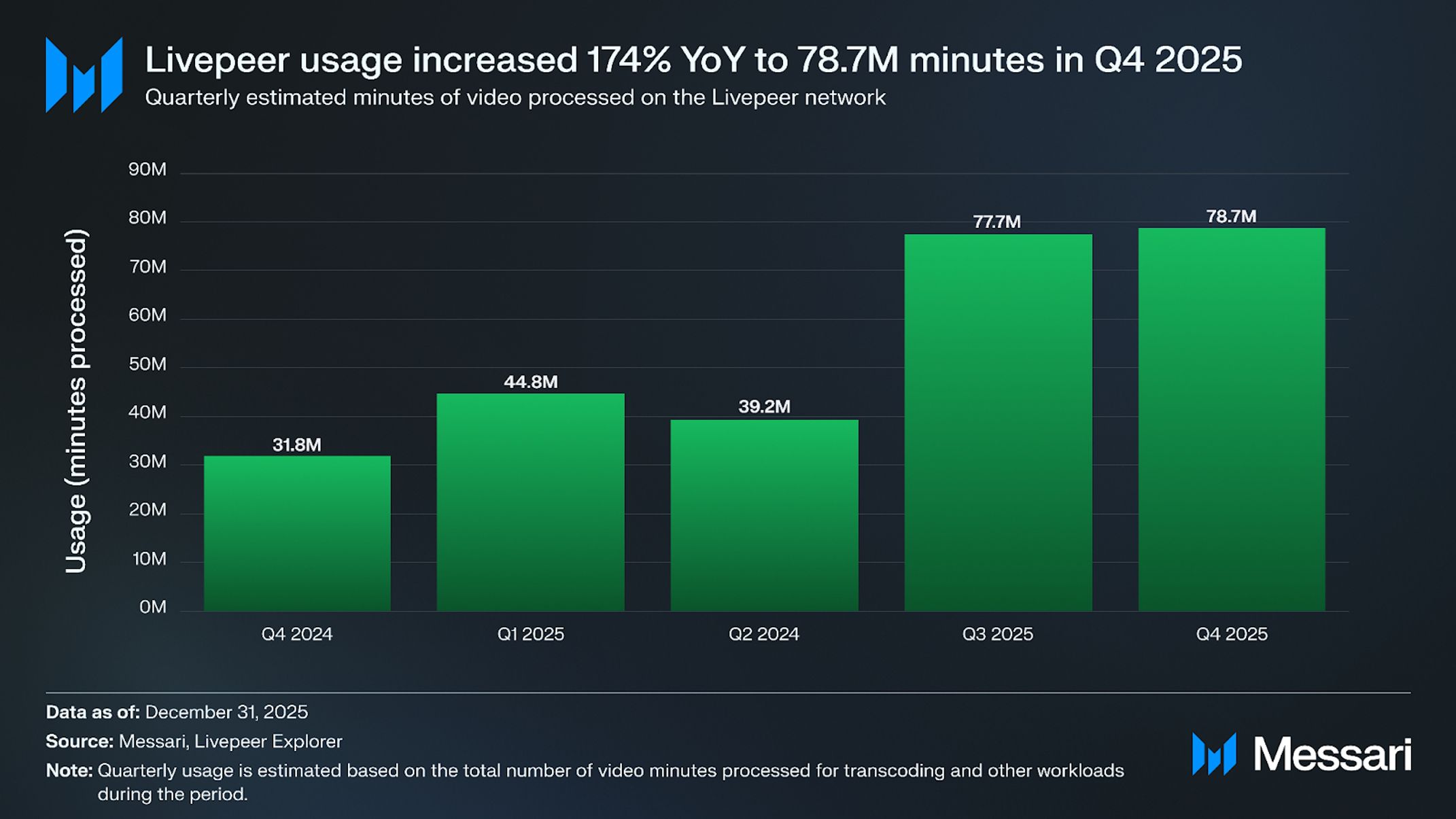 처리 볼륨은 4분기에 전년 동기 대비 174% 증가했으며, 이는 라이브피어 네트워크가 사용되는 방식의 명확한 변화를 나타낸다. 이러한 성장은 네트워크의 실시간 AI 비디오 작업 부하에 대한 수요를 명확히 검증한다.