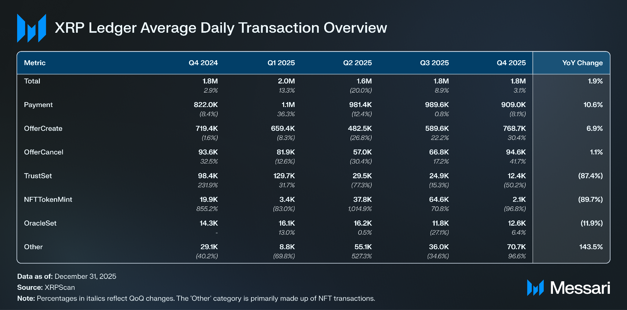 XRP 렛저(XRP Ledger) 2025 4분기 현황