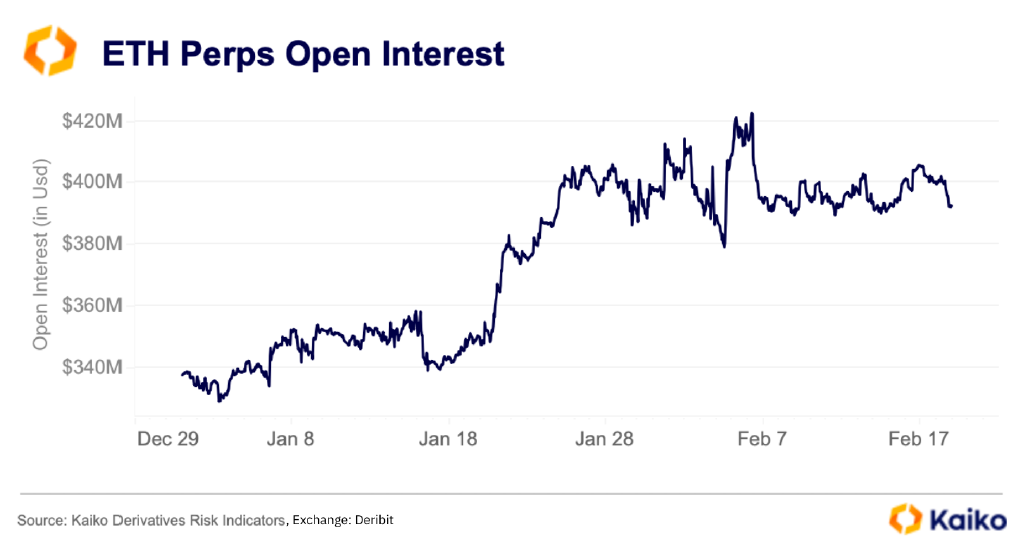 옵션 외에도 무기한 선물 포지셔닝은 위험선호도와 레버리지를 시의적절하게 파악하는 수단이 되며, BTC와 ETH 퍼프(perps) 미결제약정 데이터는 2026년 초 국면 전환을 맥락 속에서 이해하는 데 도움을 준다. 두 자산 모두 1월까지 미결제약정이 상승한 후 위축을 경험하는 동일한 패턴이 나타난다. 같은 패턴이 BTC와 ETH 양쪽에서 관찰되지만, BTC 곡선이 더 큰 절대적 변동 폭을 보이는데, 이는 더 깊은 파생상품 시장과 방향성 익스포저의 주요 수단으로서 BTC의 역할을 반영한다. 종합하면, 이러한 퍼프 역학은 옵션 신호를 보완한다. 익스포저가 꾸준히 축적되는 것이 아니라 능동적으로 조정되는 국면을 가리키며, 시장이 확장 또는 위축 국면에 있는지를 평가할 때 현물 거래량 및 유동성과 함께 미결제약정을 필수 지표로 모니터링해야 함을 시사한다.