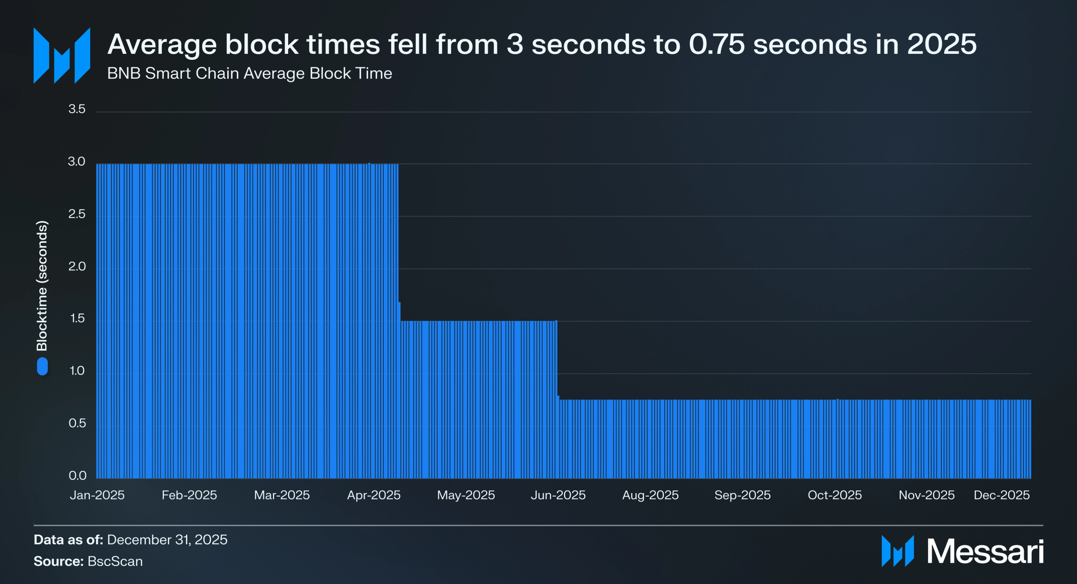 BNB 체인은 2025년에 파스칼(Pascal), 로렌츠(Lorentz), 맥스웰(Maxwell), 페르미(Fermi, 진행 중) 총 4번의 하드포크를 실행했다. 이러한 업그레이드들은 BNB 체인의 성능을 다음과 같이 개선했다.