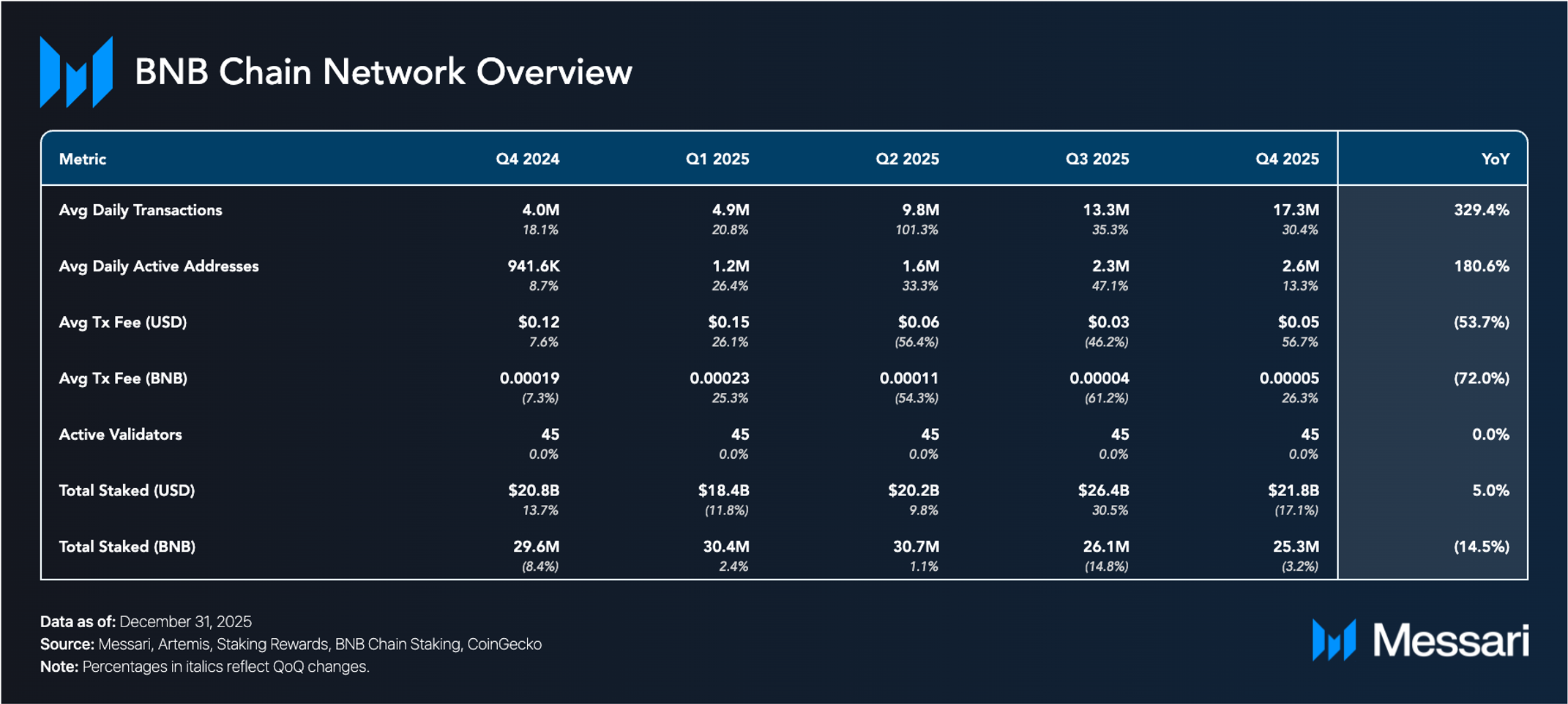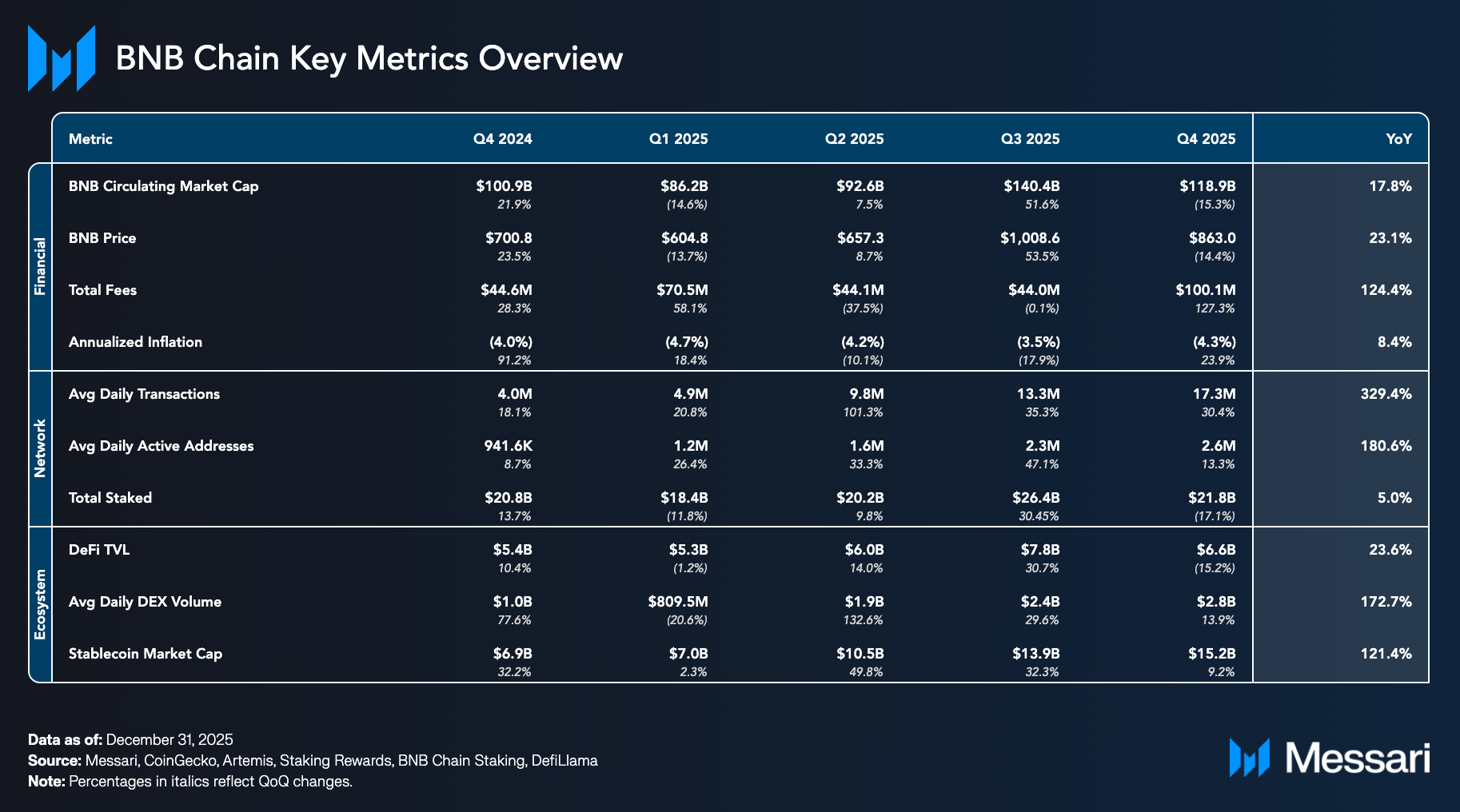 BNB 체인(BNB Chain) 2025 4분기 현황