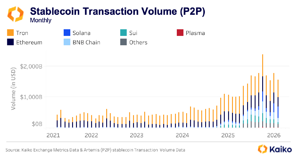 트론의 월별 수익 또한 이더리움과 솔라나의 극적인 등락과 달리 변동성이 거의 없다. 트론은 글로벌 USDT 송금을 주도하며 일일 거래량의 대부분을 처리하고 있는데, 이 활동은 결제, 거래소 이체, 국경 간 송금 등으로 대부분 비투기적 성격이며 시장 방향과 무관하게 지속된다. 결과적으로 이더리움과 솔라나가 갖추지 못한 수익 하한선이 형성되며, 이 두 체인의 수수료 수입은 실용적 사용이 아닌 투기를 추적한다.