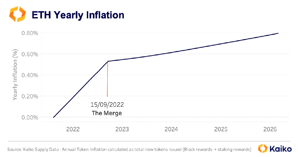 머지(merge) 이후 이더리움의 평균 인플레이션 0.23%는 이러한 악화를 은폐하고 있다. 머지 후 첫 18개월간은 소각이 발행을 초과하는 디플레이션 구간이 빈번하게 나타났다. 덴쿤 이후 디플레이션은 완전히 사라지고, 지속적인 순 인플레이션이 새로운 구조적 기준선으로 자리잡았다. L2 경제 구조가 한때 "울트라사운드 머니(ultrasound money)"를 가능하게 했던 수수료 소각 메커니즘을 무력화했기 때문에, 프로토콜은 이제 영구적으로 인플레이션 상태다.