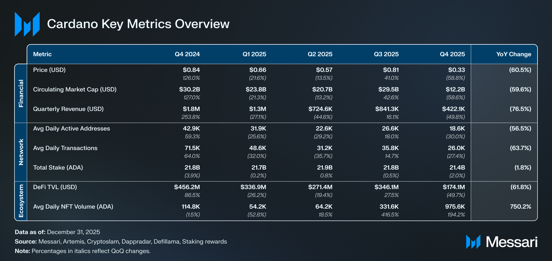 카르다노(Cardano) 2025년 4분기 현황