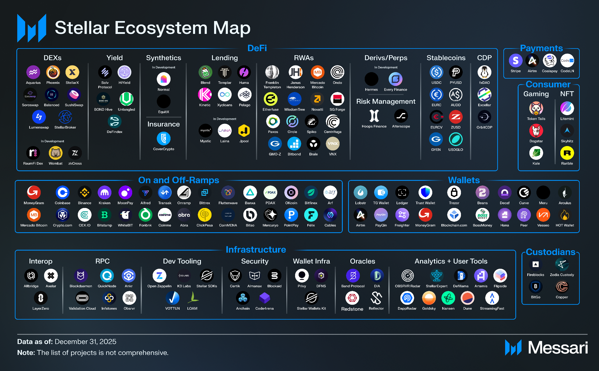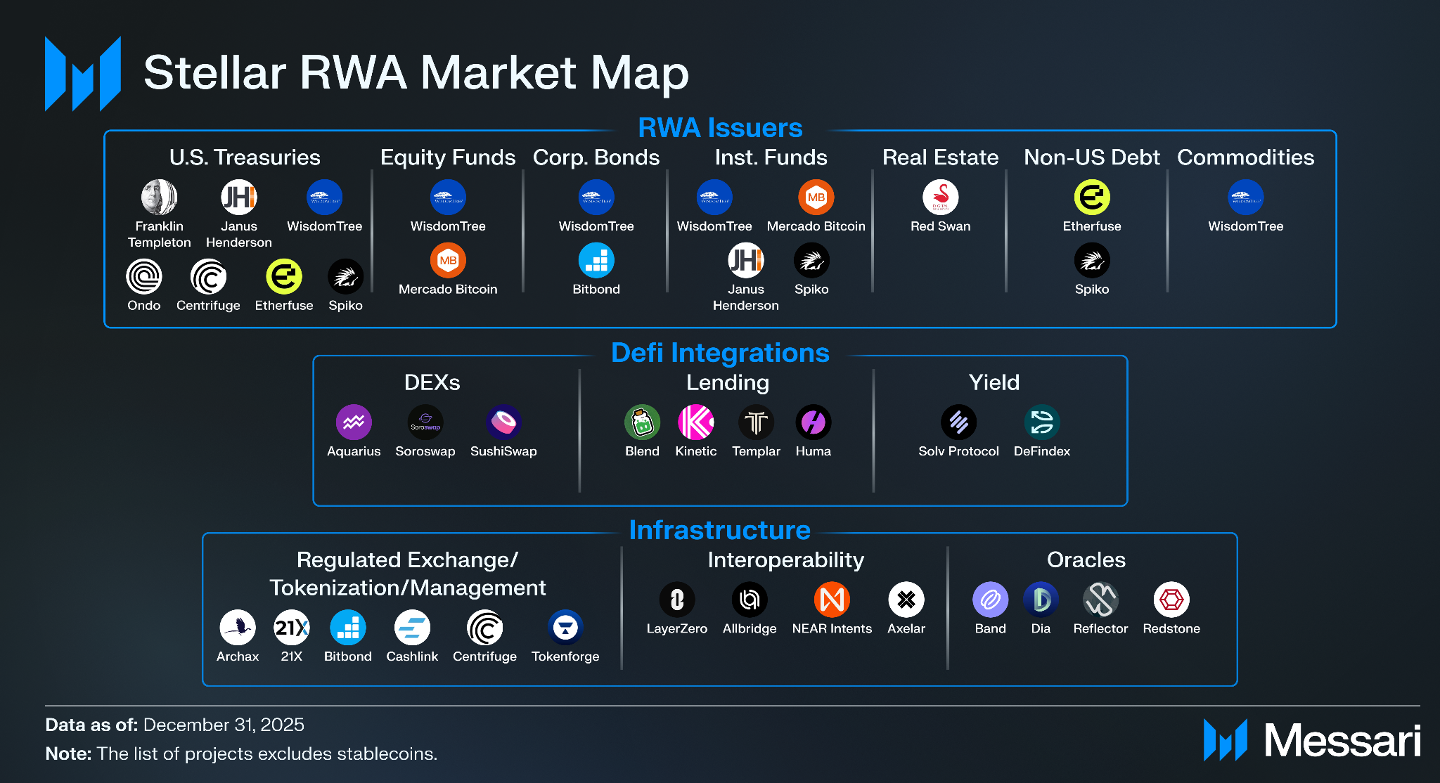 또한 12월, 스테이트 스트리트(State Street)는 토큰화된 사모 유동성 펀드(SWEEP)가 2026년 하반기 스텔라에 출시될 예정이라고 발표했다. 스텔라 RWA 생태계에 대한 자세한 내용은 메사리의 스텔라 현황: 실물 자산 보고서를 참조한다.