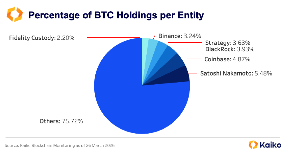 이 수치들은 이제 암호화폐 고유 인프라와 직접 경쟁하는 수준이다. 코인베이스 커스터디는 전체 BTC 공급량의 약 4.87%(현재 가격 기준 720억 달러)를, 바이낸스 지갑은 3.24%(500억 달러)를 보유하고 있지만, ETF 합산 보유량은 개별 거래소 집중도를 이미 넘어섰다.