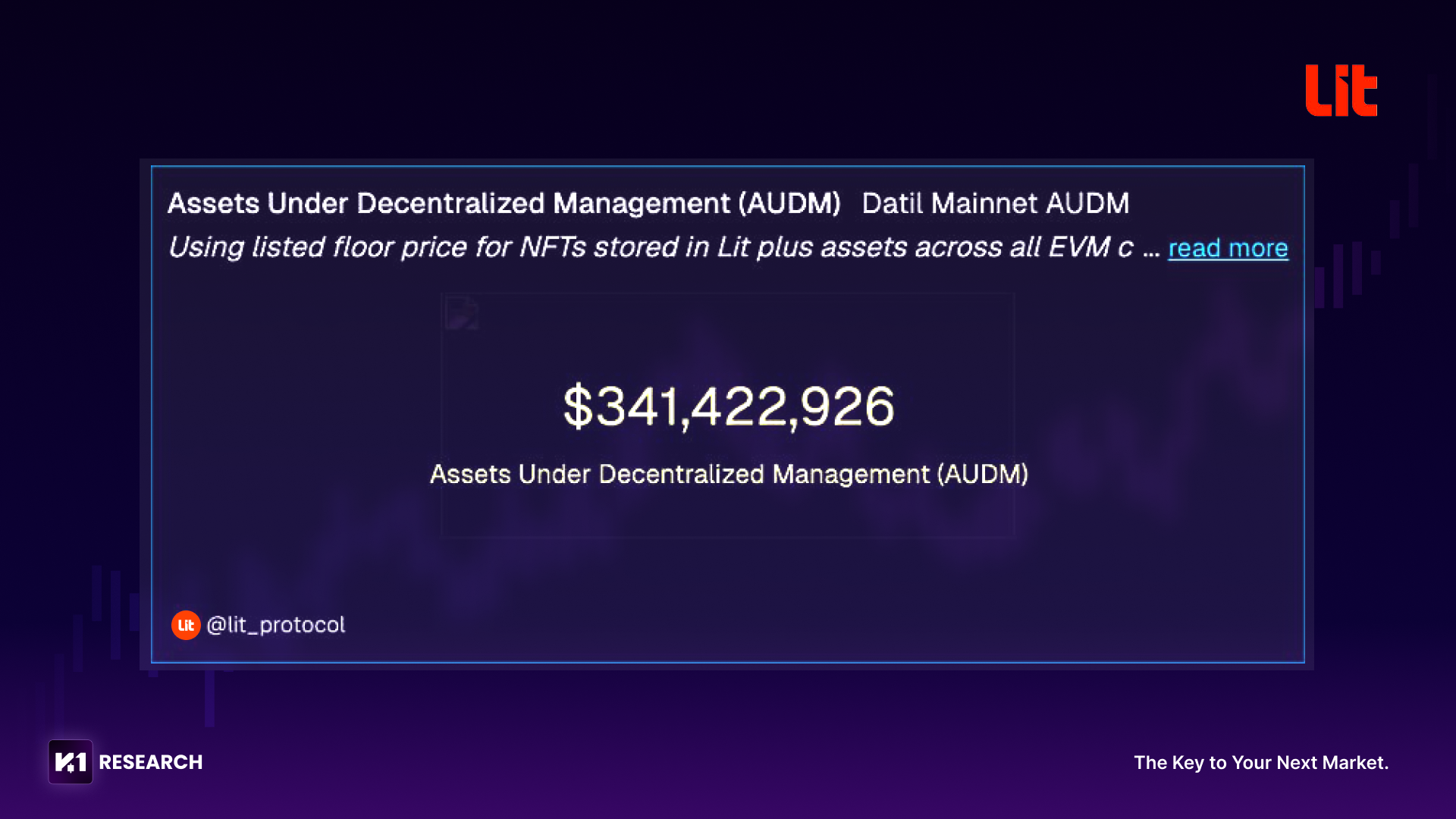 9월 25일 기준, Lit Protocol이 관리하는 총 자산 규모(AUM)는 3억 4천만 달러에 달하며, 해당 규모는 여전히 빠른 속도로 성장 중이다. 이는 탈중앙화 자산 관리 분야에서 Lit가 갖는 강력한 시장 매력과 생태계 활력을 잘 보여준다.