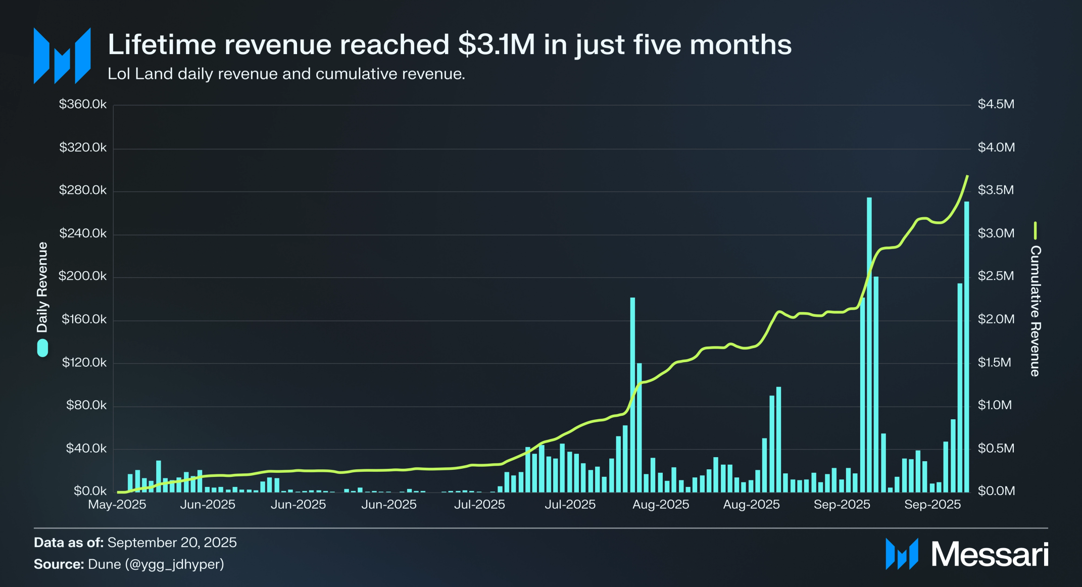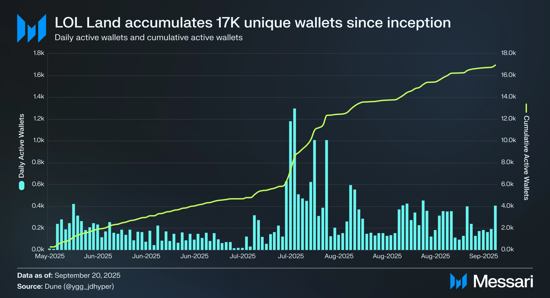 LOL 랜드는 출시 이후 1만 6,979개의 고유 지갑을 유치했고, 일평균 243명의 활성 플레이어를 기록했다. 채택을 촉진하려는 YGG의 노력은 직접적인 영향을 미쳤다. 2025년 7월 21일 말레이시아 블록체인 위크(Malaysia Blockchain Week) 기간 동안 활동이 급증했다. 이때 게임은 게이밍 케이브(Gaming Cave) 부스에서 캠브리아(Cambria), 플래닛 헤어즈(Planet Hares), 스펙터(Spekter)와 함께 소개됐다. 이러한 급증은 이벤트 주도 활성화를 통해 플레이어 기반을 적극적으로 확대하려는 YGG의 노력을 보여줬다.