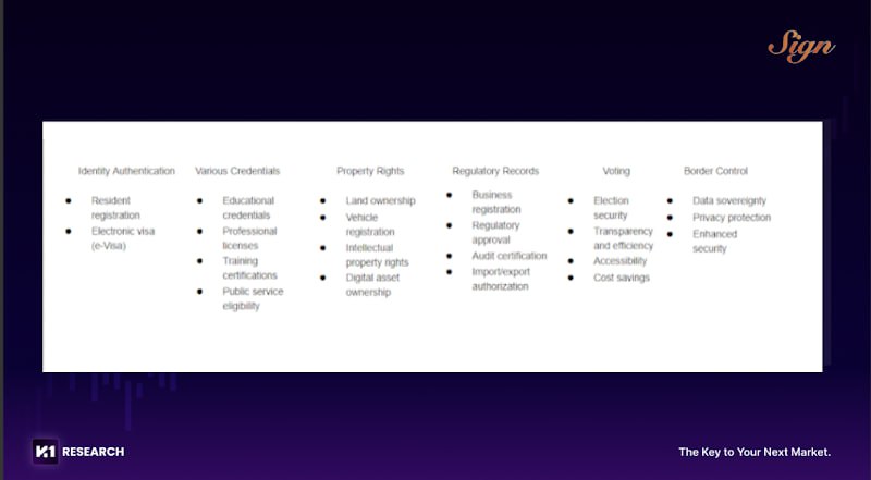 주권과 블록체인의 결합은 금융 차원에만 머물지 않는다. 그것은 인증과 거버넌스의 차원까지 확장된다. 금융 인프라 트랙에는 이미 수백 개의 블록체인이 경쟁하고 있지만, 주권 인증과 거버넌스 인프라 트랙에서는 오직 SIGN만이 실질적인 진전을 보이고 있다. 인증과 거버넌스의 기반에는 신용, 복지, 자격 인증, 재산권 증명 등 국가 주권과 직결된 수많은 영역이 존재한다.SIGN은 이러한 모든 요소를 하나의 통합 프레임워크 안에 담으려는 프로젝트이다.