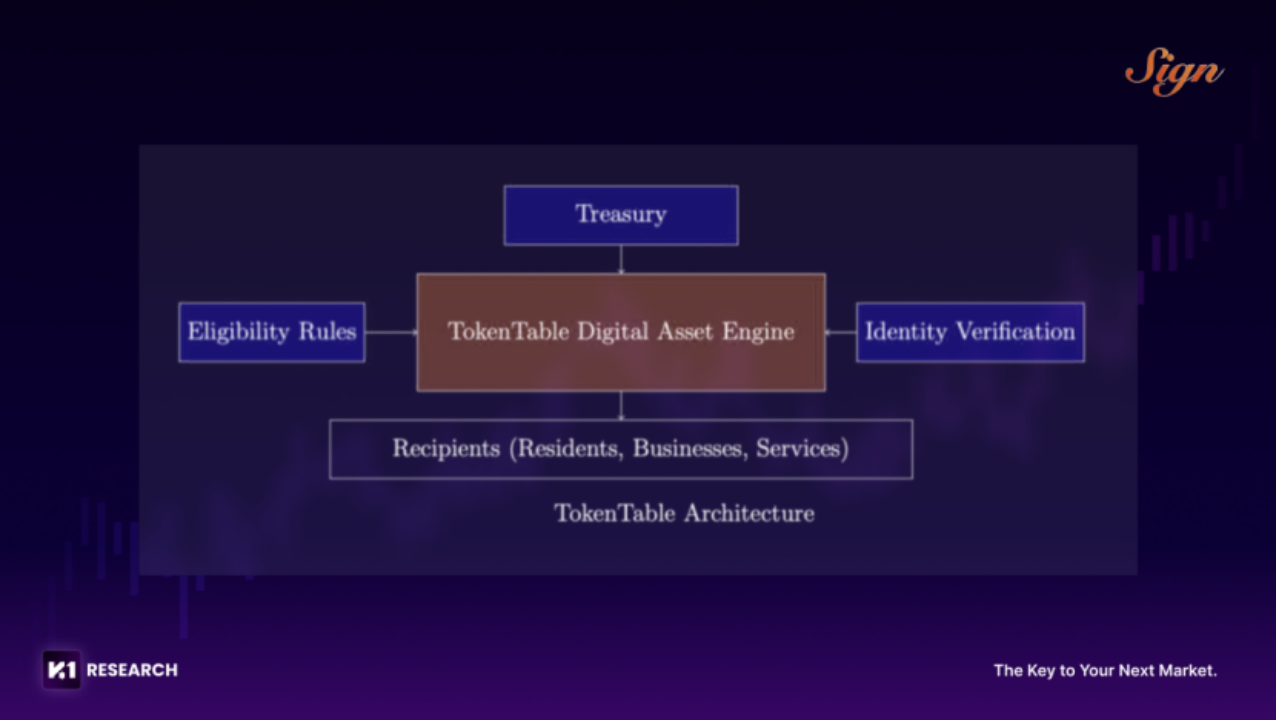 간단히 말해 TokenTable은 고속 결제 및 분배 시스템이다. 주권 체인을 기반으로 하며, 신원과 직접 연결되어 복지, 보조금, 국가 자산 배분 등의 정부 재정 집행을 담당한다.