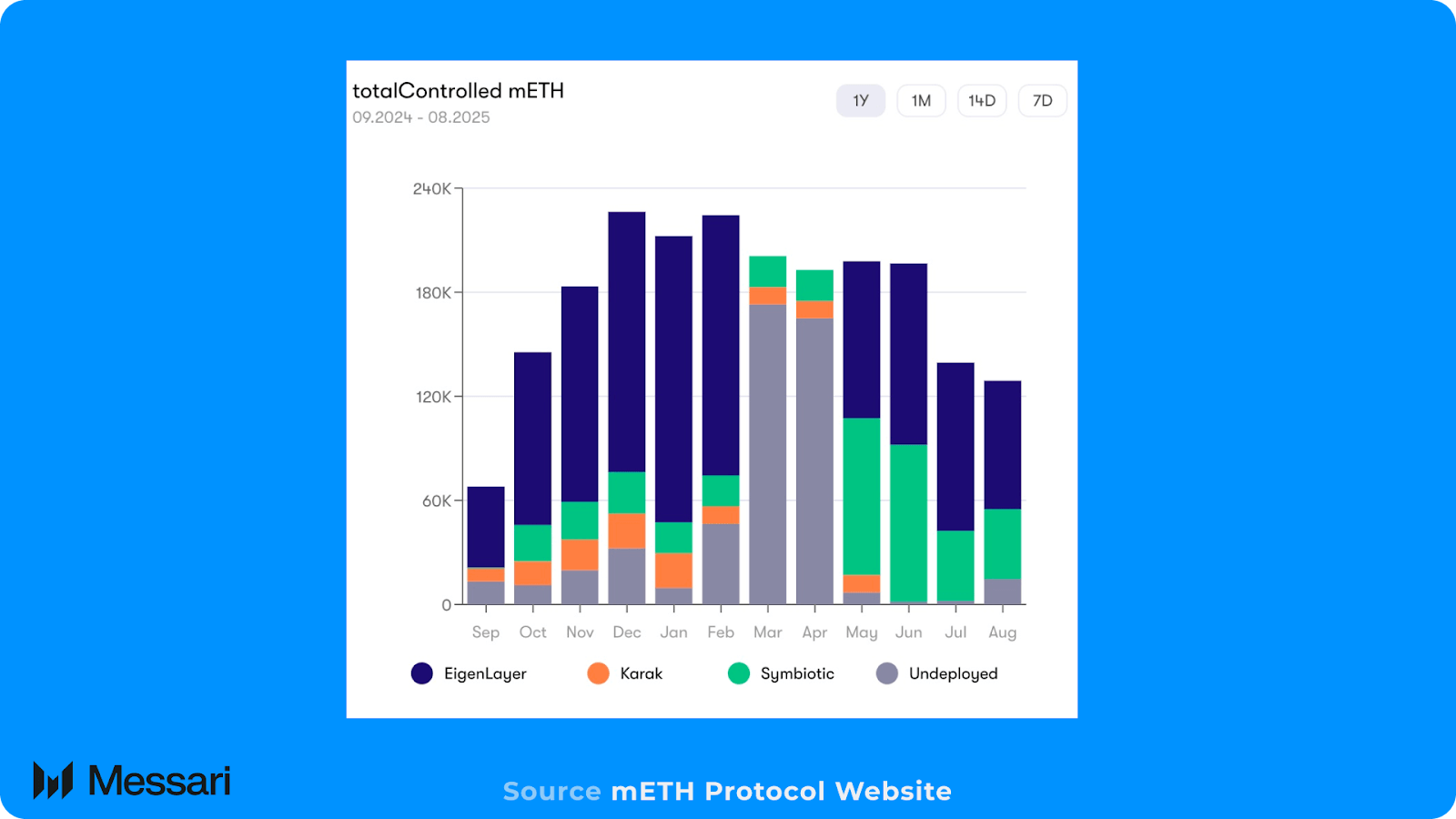 • mETH는 상장 기업의 대차대조표에 보유된 최초의 리퀴드 스테이킹 토큰이 되었다. 2025년 5월, 리퍼블릭 테크놀로지스(Republic Technologies)는 유휴 ETH에서 수익을 얻기 위해 mETH를 채택한다고 발표했다.